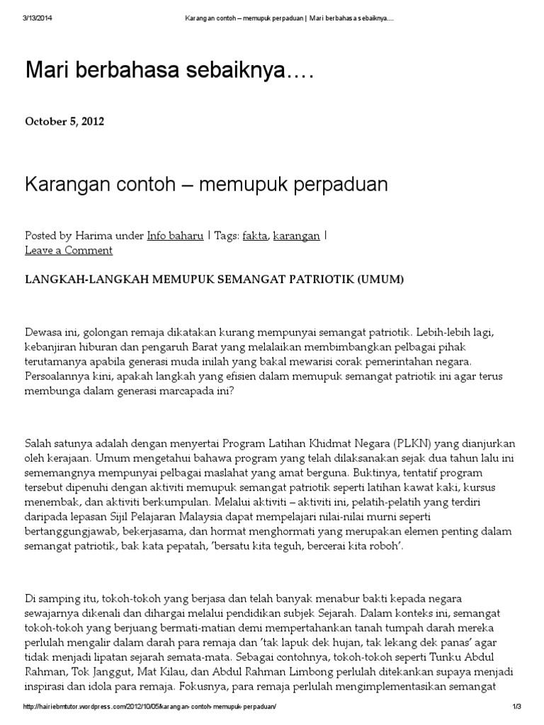 Sudah terang lagi bersuluh semakin hari kita semakin menghampiri ambang 2020. Sila edit draf yand telah anda sediakan. Secara keseluruhannya perpaduan kaum bukanlah hasil daripada satu malam sahaja tetapi perpaduan ini terhasil daripada keringat pemimpin dan darah pejuang terdahulu yang tidak dapat dibayar atau dibalas dengan wang.